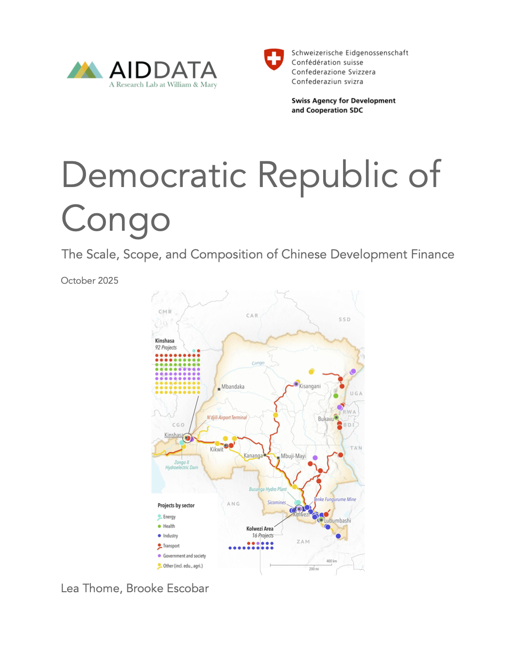 Thome, L. and Escobar, B. (2025). Democratic Republic of Congo: The Scale, Scope, and Composition of Chinese Development Finance. Williamsburg, VA: AidData at William & Mary.