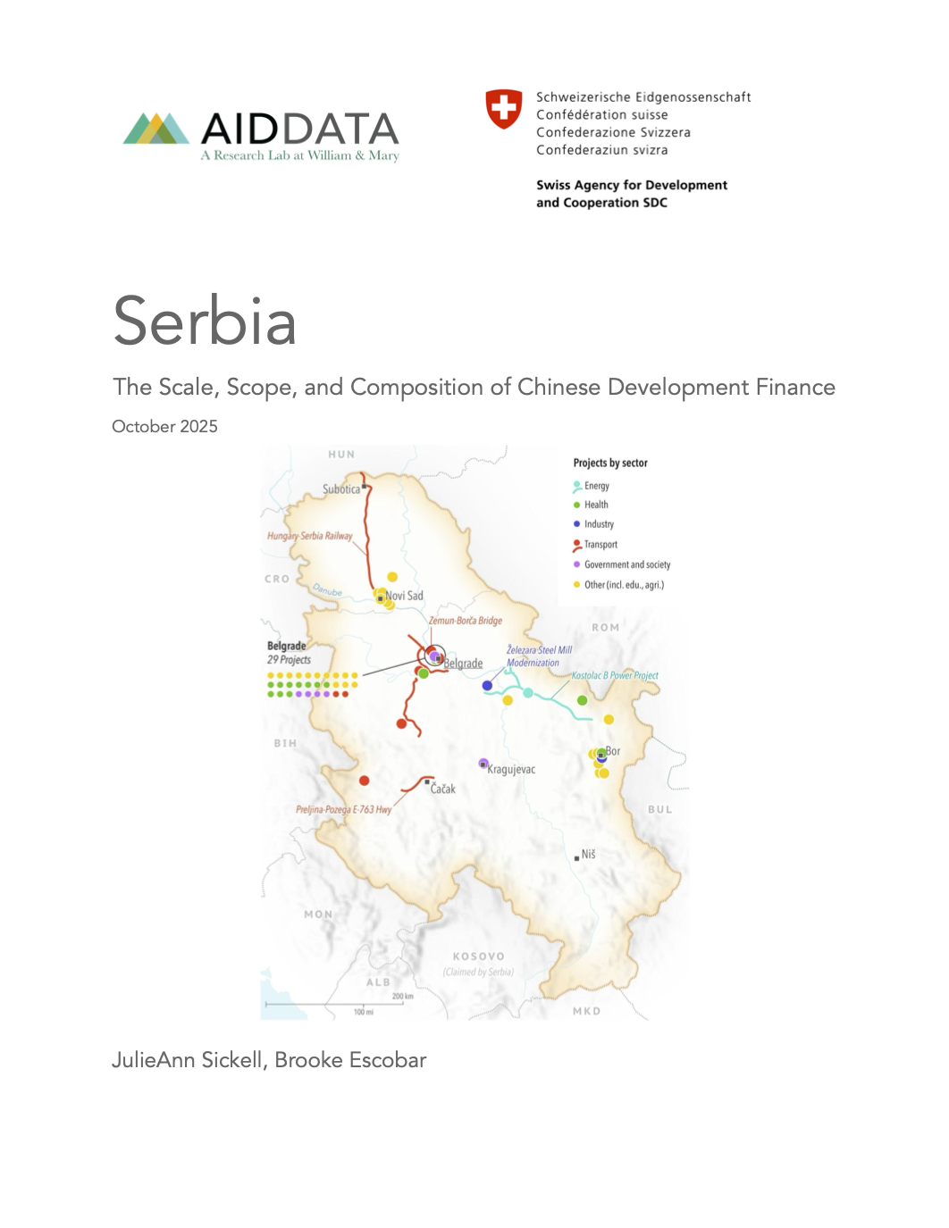 Sickell, J. and Escobar, B. (2025). Serbia: The Scale, Scope, and Composition of Chinese Development Finance. Williamsburg, VA: AidData at William & Mary.