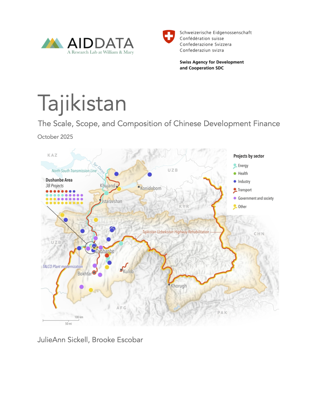 Sickell, J. and Escobar, B. (2025). Tajikistan: The Scale, Scope, and Composition of Chinese Development Finance. Williamsburg, VA: AidData at William & Mary.